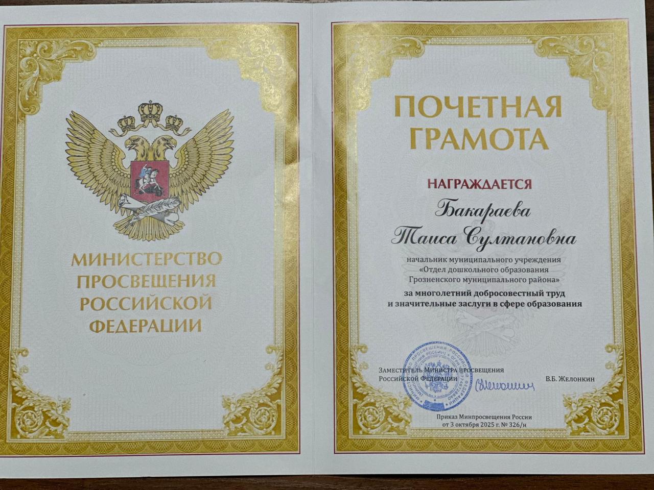 - Устав ДОУ утвержден Приказом Министерства образования и науки Чеченской Республики № 798 - п от 26.08.2024 г.